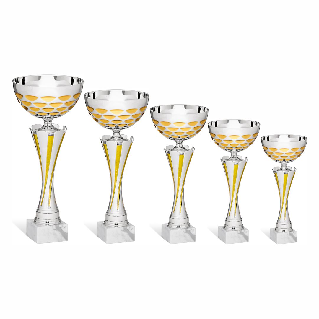 Višine pokalov: 40,5 cm, 35,5 cm, 33 cm, 28,5 cm, 26,5 cm.