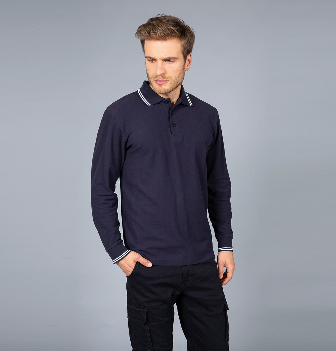 Moška polo majica z dolgimi rokavi iz 100% česanega bombaža, pique.