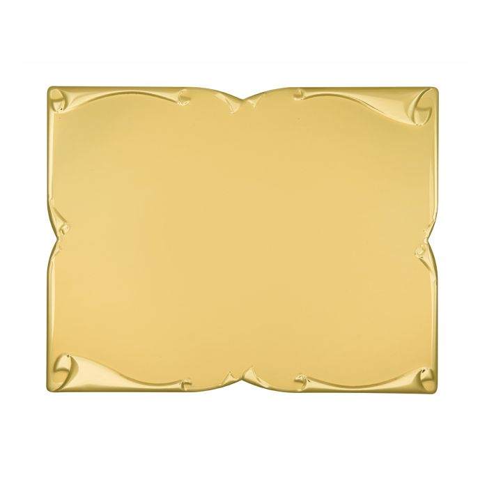 Pravokotna plaketa v zlati ali srebrni barvi z dekorativnim robom. Na voljo v 3 velikostih in 2 barvah. Ponuja veliko površino, kamor lahko natisnemo besedilo (tudi logotip, fotografija, risba …) po vaših željah. Vse plakete je potrebno še dodelati (tisk) in opremiti s škatlo, mapo, okvirjem ali stojalom.